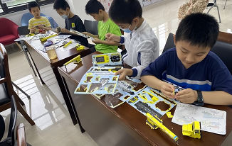 来到社区活动室,谢老师与付老师细心指导小朋友们进行模型制作。在老师及志愿者的帮助下,大家组装渐渐熟练,模型板子在大家细心的制作下,一架架“起重车”组装完成。