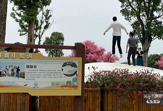 跟随导游的脚步,大家来到了杜堂大戏台、美食商业街、木兰奇妙广场、樱花园,并体验了木兰花乡蹦蹦云,该项目可蹦、可滑、可爬,适合不同年龄段的人群使用,感觉就像在空中漫步一样,是个独特的体验。