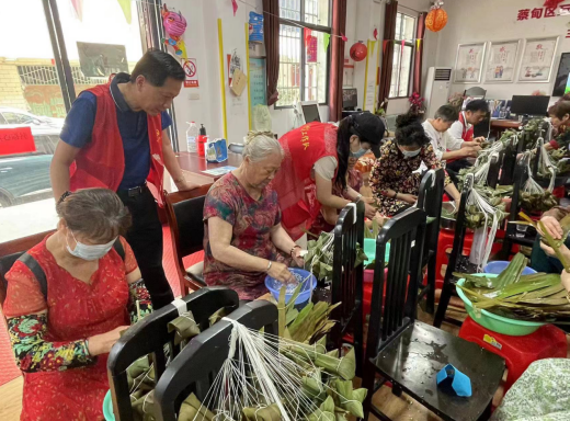 5月31日,区科协部分干部职工来到蔡甸街三义社区活动室,开展党员“双报到”进社区庆端午活动。为了保证活动的顺利进行,社区的工作人员提前一天做好准备工作,买好了糯米、粽叶等一系列食材,并清洗好粽叶,泡好粽叶和糯米,社区居民、社区志愿者和党员干部们一起捋粽叶、做漏斗状、填糯米、压紧实、封口、扎捆。瞬间,一只只各式各样的漂亮粽子成型。大家在互帮互助的包粽子过程中,拉近了彼此间的距离。