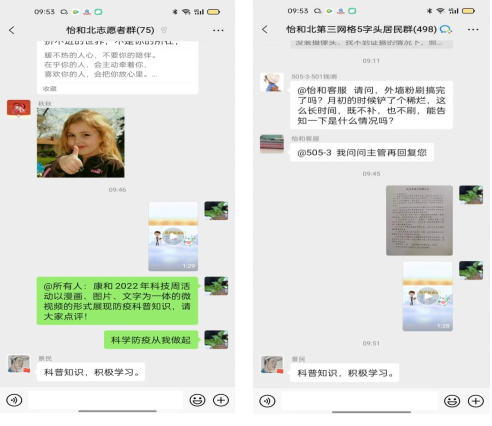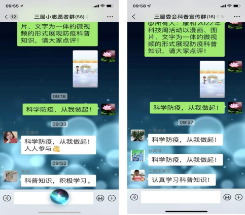 科学防疫微视频均在三居委会志愿者群、小小楼栋长志愿者群、居民群、党员群等,宣传覆盖面达到3000人以上,大家积极参与,积极学习,直观清晰的描述了科学防疫需要注意的事项和要点,人人参与防疫,早日战胜疫情!