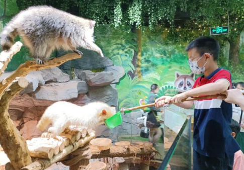 园内的明星动物巨嘴鸟、水豚、小浣熊、狐獴等让到场的小小探险家们瞬间兴奋起来“这只鸟嘴巴真大 ”“竟让还有白色的小浣熊”