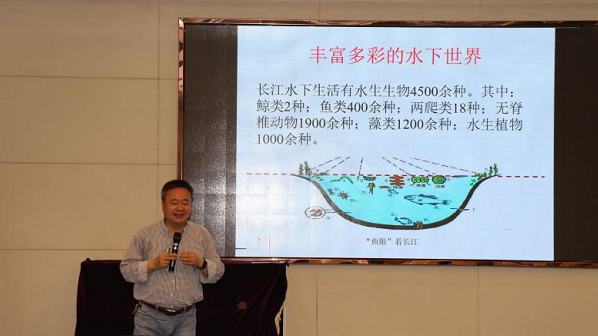 演讲中,张博士用不同的角度——“鱼”眼看长江,给大家生动地介绍了长江中常见的一些藻类、鱼类。还通过白鲟的灭绝、白鳍豚功能性灭绝、中华鲟危在旦夕和四大家鱼繁殖规模下降等详细的事例和数据,让同学们了解到长江“病”了,并和同学们分享了相关原因和生态保护的措施。