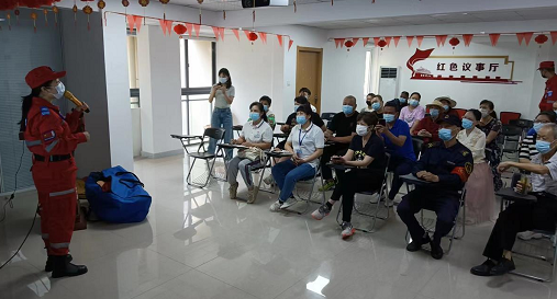 5月31日,武汉市应急安全科普社区行活动走进武昌区中南路街道晒湖社区,武汉市“常备佳”应急救援队的专业人员在社区会议室,向社区工作者、物业公司工作人员、社区居民宣传应急救护知识。