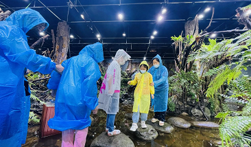 最后,大家来到了紫阳公园热带雨林体验馆:这里有300多种、含800多棵植物,十几种爬行类动物!整个场馆让人感到耳目一新!流水、瀑布、喷雾,还有各种动物昆虫的叫声和电闪雷鸣,让人仿佛“我和妈妈学科学”科普研学活动身临其境。孩子和妈妈们一边参观一边交流,深深地被大自然的魅力所吸引。