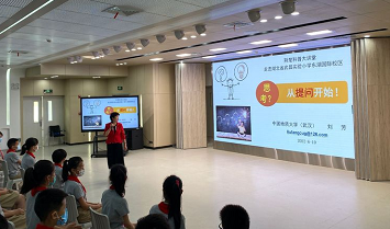 中国地质大学(武汉)副教授刘芳以“思考,从提问开始”为主题,向五年级的学生开展了一场生动有趣的校园活动。