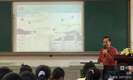 陈教授从生活中关注的热点问题出发,以中国旅游胜地为例,聚焦古迹遗址保护,通过浅显易懂的话语、贴近孩童的互动交流和严谨务实的科学态度,激发了同学们对气候知识的浓厚兴趣,进一步增强了同学们的环保意识和主人翁意识。