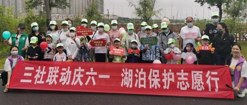 为庆祝六一国际儿童节,贯彻落实街道对社区共建共治共享,洪山区科协整合资源,发挥洪山区“大学之城”的优势,利用“区校合作”的方式,将大学优质资源引入社区。林屿岸春天社区联合韵湖社区、汤逊湖社区于5月28日上午开展“三社联动庆六一 湖泊保护志愿行”亲子家庭护湖行动。