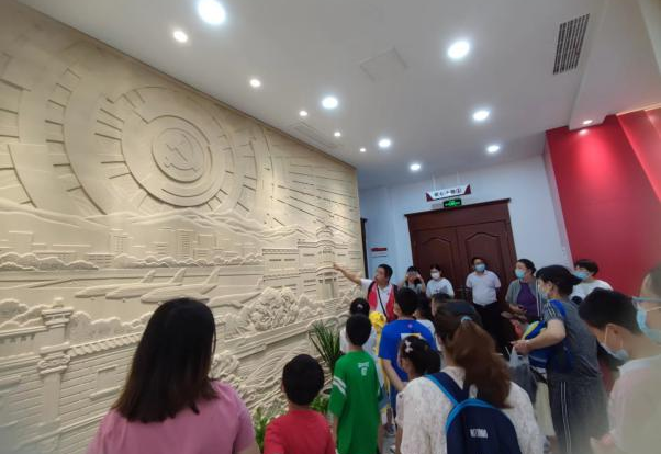 传承红色文化,铭记英雄事迹,活动伊始,武昌区南湖街青少年科普中心谢老师组织社区居民及青少年乘坐大巴车来到南湖街青少年红色文化基地,参观南湖街道党史馆,通过党史馆文化墙,为社区居民及青少年讲述“红船精神”、“井冈山精神”“长征精神”等党史故事。