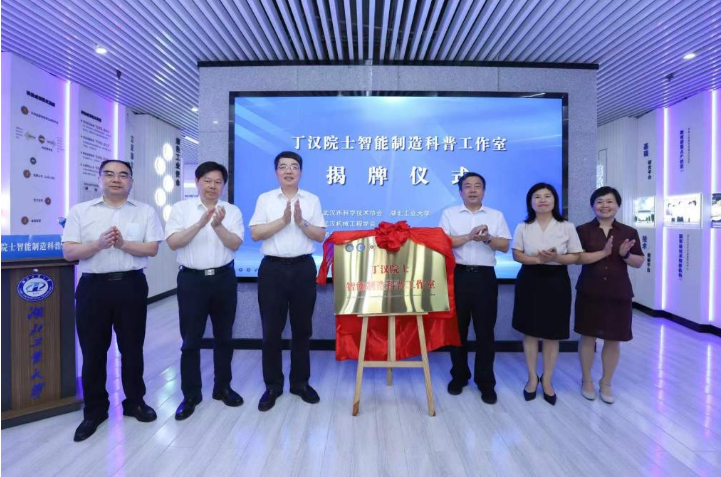 6月30日,在湖北工业大学实训楼,全国首个以院士领衔命名的智能制造科普工作室——“丁汉院士智能制造科普工作室”(以下简称“科普工作室”)揭牌成立。