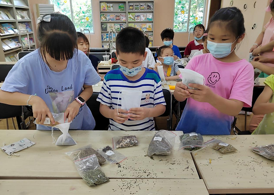 活动最后大家将12种中药材放入香囊中,对其进行简单缝制,从而制作了一个个精美且香气扑鼻的防疫香囊。