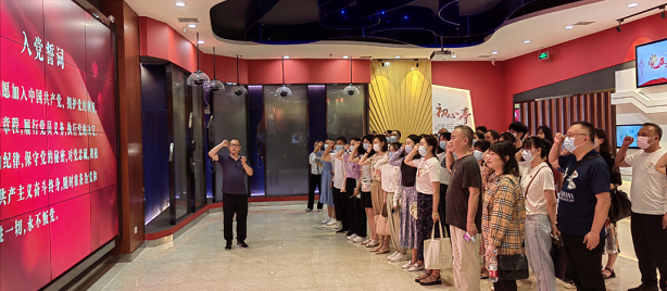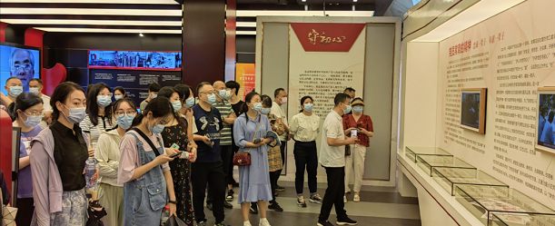 活动首站来到党员常青政治生活馆,学习老党员“忠诚一辈子、奉献一辈子”的党员常青精神。在江汉区科协副主席黄利民带领下,在场四十余名党员、党务工作者代表面对鲜红的党旗,庄严地举起右拳,齐声宣誓,重温入党誓词。