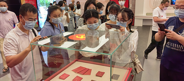 参观代表从忆初心、守初心、践初心、悟初心四个方面,在文字与影像中追寻足迹,回顾中国共产党为实现中华民族伟大复兴这一历史使命而奋斗的历程。看到老党员保存数十年的党史党章被精心摆放在展柜里,参观代表纷纷举起手机,记录下这跨越时空的红色传承。
