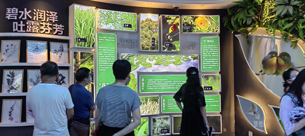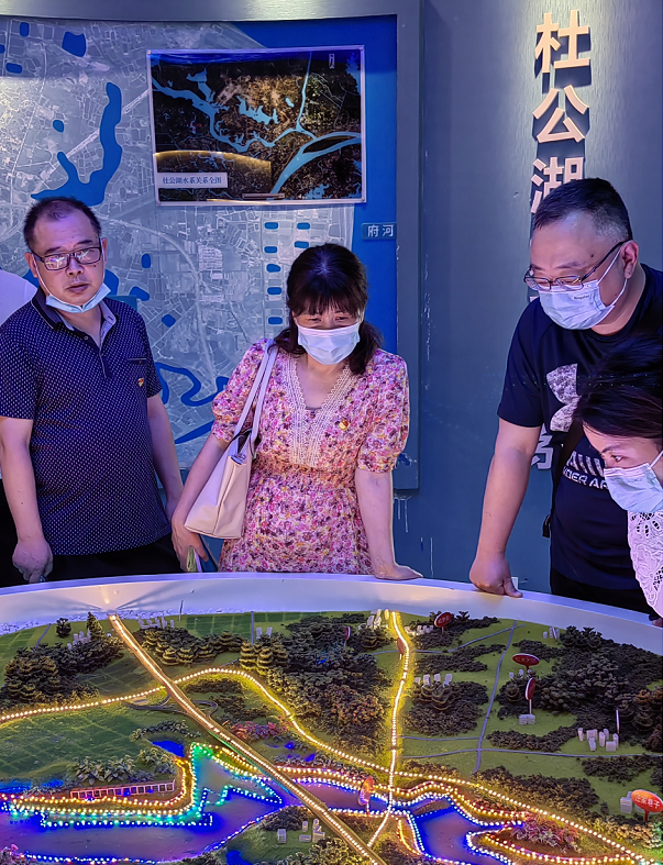 活动第三站来到杜公湖湿地科普馆,2019年底建成的杜公湖国家湿地公园是武汉市最年轻的国家级湿地公园,面积为 231.26 公顷,湿地面积为 195.3 公顷,公园内生物多样性资源丰富,目前监测记录有鸟类动物139 种,鱼类54种,兽类17种,两栖类9种。
