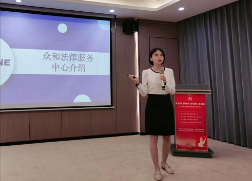 活动的第二环节,由众和法律服务中心主任肖洁、中星公证处主任龙锐、北京中伦(武汉)律师事务所主任张曙光、浦发银行工作人员分别做了《多元解纷 助力防范金融风险》《公证为民 着力匹配企业需求》《普法助企 有效防范金融风险》《金融惠企 靶向解决企业资金困境》的政策宣讲。