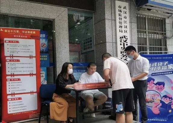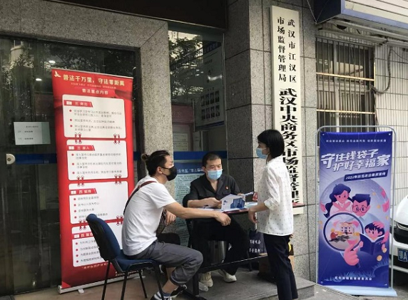 为深入贯彻落实习近平总书记关于知识产权工作的重要指示,进一步提升全社会知识产权意识,以优良的法治保障激发万众的创新动力,营造良好的营商环境,打击假冒伪劣、山寨食品,保障人民生活幸福安康。2022年7月6日,江汉区科学技术协会、武汉金融街管理委员会、江汉区人民法院、江汉区市场监督管理局常青所、武汉众和法律服务中心在江汉区市场监督管理局常青所开展了“保护知识产权、维护食品安全”的食品安全普法宣传活动。