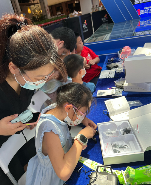 听完航天科普小讲座后,孩子们发挥自主动手能力,在老师的帮助下,组装完成无人机并进行试飞。