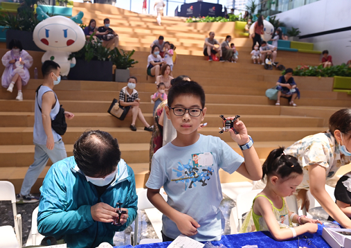 八岁的韩辰灏告诉记者,今天的组装不难,很快都装好了,但是没能试飞成功有点遗憾,准备回家再试试。