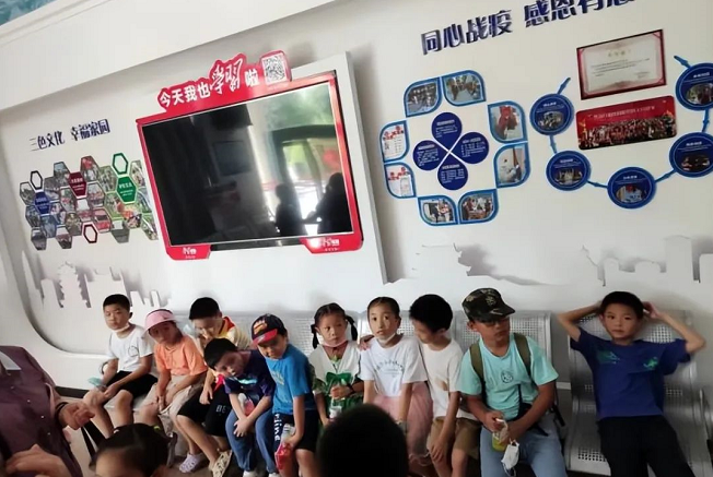 小朋友看着文化墙老影像,活动现场慢慢安静起来,孩子们深知正是这些伟人先烈负重前行才成就我们现在幸福的生活。