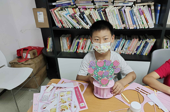 “老师,这一步做得对不对?”“老师,你看我的花盆漂亮吗?”“老师,我的花盆怎么立不住?”绘画手工课上气氛热烈,志愿者老师手把手指导孩子们制作“花盆贺卡”,打造沉浸式学习环境,面对一连串提问,老师通过讲解与演示、提问与回答、指导与引导相结合的方式,让绘画课程真正“活起来”,增强科普教育的感染力。