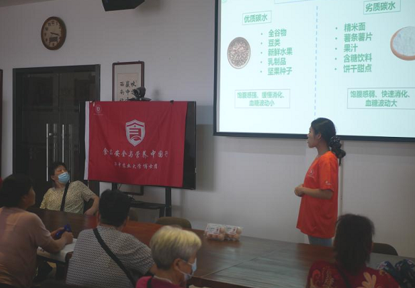 2022年7月6日下午,华中农业大学食品科技学院“食品安全与营养中国行”博士科普团走进武汉市武昌区起义门社区,开展了主题为“疫情下的平衡膳食”科普宣讲,旨在让大家意识到均衡膳食的重要性,注意养成良好的饮食习惯。此次活动由博士团志愿者徐泽如主讲,起义门社区工作人员与三十余位社区居民共同参与。