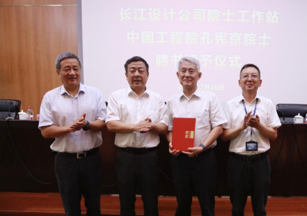 7月26日,长江勘测规划设计研究有限责任公司院士工作站再添“智囊”,湖北武汉院士中心秘书长、党组书记、副主席陈光勇为中国工程院院士孔宪京颁发入站聘书,仪式由中国工程院院士、长江设计集团有限公司党委书记、董事长钮新强主持。