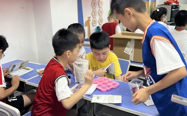 活动中,游品慧专业授课殷老师通过PPT课件播放进行教学,让孩子们了解神龙架中华蜂的特点,孩子们一边认真记录蜜蜂的基本知识、品质精神,了解蜜蜂与人类的关系,一边聆听专业老师绘声绘色地讲述神龙架中华蜂家族的故事,讲述蜜蜂与人类的故事,孩子们听得津津有味,并和身边的小伙伴共同研究着神龙架中华蜂构造。讲解结束后,殷老师带领孩子们用蜂蜜制作手工皂,分步骤讲解和演示蜂蜜皂的制作方法,并给大家介绍了制作手工皂的各种材料、工具及制作手工皂的流程和技术要点。然后在殷老师的详细示范和耐心指导下,大家三人一组用溶解好的皂基水,配上自己喜欢的颜色及花型图案,再倒入精心挑选的模具中。不一会儿小朋友们亲手做出的玫瑰花、鲤鱼、小兔、汽车、爱心菊等各种形态精致小巧的手工皂就呈现在了大家的眼前,大家拿着自己亲手制作的香皂,开心和自信呈现在了每位小朋友的脸上。参加活动的忱忱妈妈表示:“社区党委链接资源组织的青少年暑期活动,理论课程实在,可能忘得很快,但是这种亲身体验却能让孩子记得很牢,沉浸式科普体验活动深受孩子们的欢迎,既动手又动脑,孩子们不虚此行”。