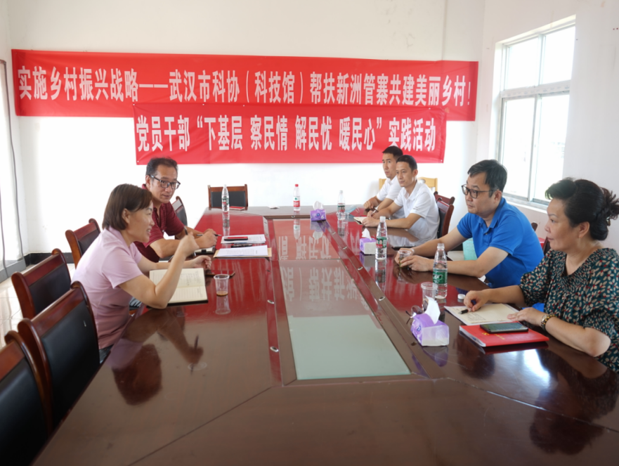座谈会上,管寨村支部书记、村委会主任卢义芬详细介绍了管寨村驻村工作队和村两委持续巩固脱贫攻坚成果,积极预防返贫特例发生和推进抗旱救灾等重点民生工作的相关成效以及管寨村土地流转情况和养殖业、种植业等产业的发展状况;汇报了管寨村请求市科协及武汉科技馆帮扶筹建“乡村振兴科普馆”的初衷;分析了当前制约管寨村劳动力发展和村级精神文明建设的原因,表达了提高农民农业生产技能和丰富精神文化生活的强烈需求。管寨村驻村工作队队长(兼第一书记)代世忠汇报了2022年驻村工作半年总结及下半年的帮扶工作计划。