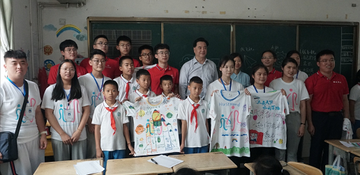 科技培养助力教育振兴,教育振兴推动乡村振兴。宋建涛同临翔区教育体育局局长李荣华、蚂蚁堆中心校长李早文、蚂蚁堆学区校长董泽军展开深入探讨,并就共同在蚂蚁堆中心完小开展科技角活动达成初步意向。8月8日,航空航天学院实践队来到蚂蚁堆中心完小,参加完小暑期夏令营素拓活动,带领完小的同学们绘画出我国的运载火箭及月球、火星。当天,华中科技大学党委书记李元元一行来到蚂蚁堆中心完小,并走进夏令营课堂。在看到小朋友们在文化衫上绘出的“超大号运载火箭”时,他称赞了小朋友们立志空天报国的梦想,并对航空航天学院实践队为小朋友们带来的启迪表示肯定与赞许。