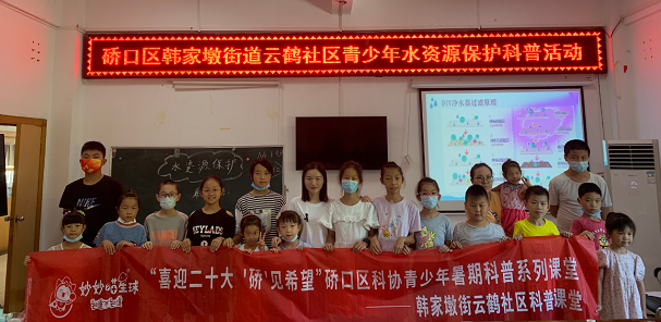 8月8日,硚口区科协在韩家墩街云鹤社区,组织开展了“喜迎二十大 ‘硚’见希望”青少年暑期科普系列课堂之“水环境保护”科普实践活动,来自社区的三十余名青少年参加。