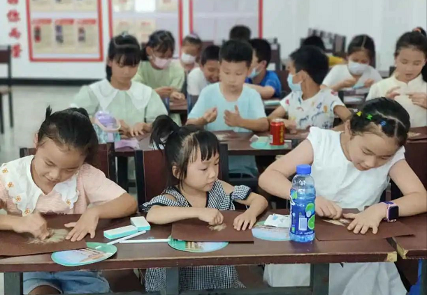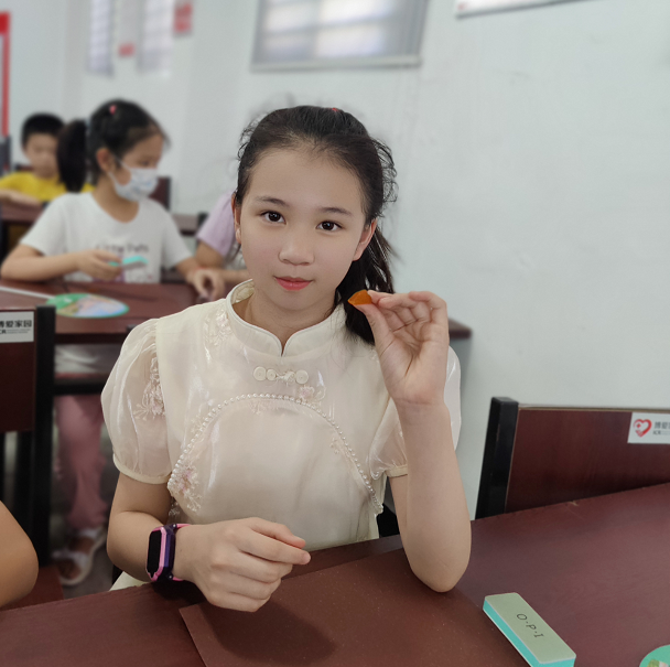 理论课程结束后,老师为每位小营员发放宝石材料包,让营员根据自己构思的形状现场设计、加工宝石,增强动手能力,感受制作宝石饰品的快乐。
