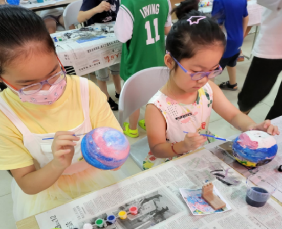 随后,社工老师为青少年们发放星球航天模型材料,并向大家讲解制作原理及制作过程。青少年们将自己心目中向往航天星球的样子通过画笔在星球上绘制,有的画月球、有的画地球、还有的画天王星……