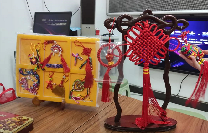 今天的主题是认识中国结。中国结,是中华民族流行千载的手工编织艺术品。其始于上古,兴于唐宋,胜于明清。史载:“上古结绳而治,后世圣人易之以书契”经过几千年时间,绳早已不是记事的工具,它从实用绳结技艺演变成为今天精致的艺术品,并赋予它了更加丰富的内涵。比如:方胜结表示着方胜平安;如意结代表吉祥如意;双鱼结是吉庆有余等等。作为炎黄子孙,中国结已深深烙印在每个中国人的心中。