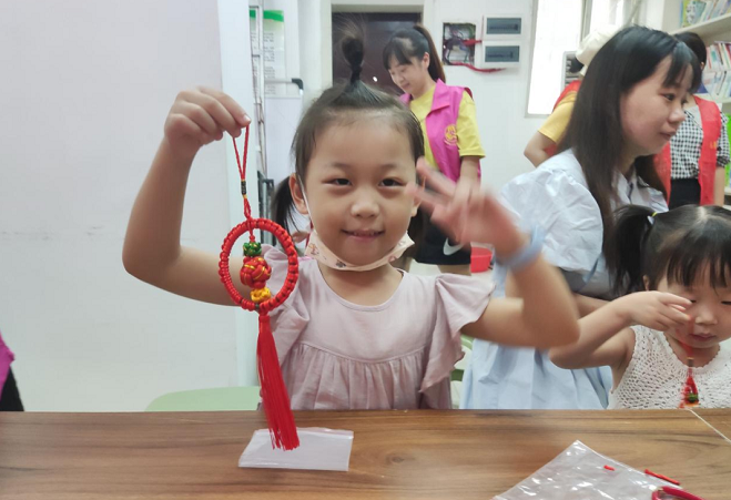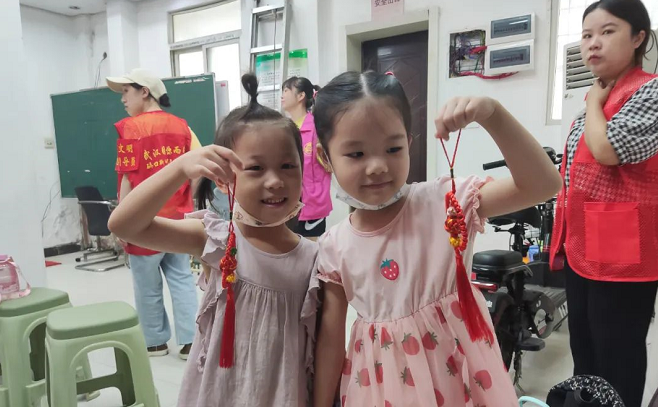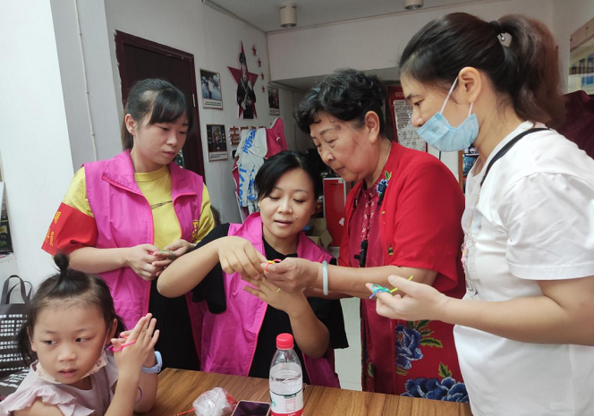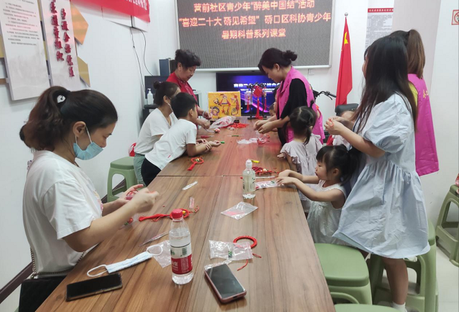 8月16日,硚口区科协在汉水桥街营前社区,组织开展了“喜迎二十大 ‘硚’见希望”青少年暑期科普系列课堂之“醉美中国结”科普实践活动,来自社区的近二十名青少年参加。