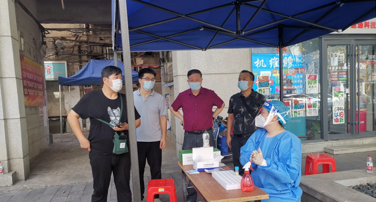 在现场,江岸区科协一行与社区工作人员进行了深入交谈,对大家在高温酷暑天气下依然坚守岗位、任劳任怨、辛勤奉献的精神表示高度赞扬和衷心感谢,并叮嘱大家要注意防暑降温,做好工作的同时,切实加强自身防护,保持良好的精神状态。同时,就进一步对接人员需求、时间安排,深化党员“双报到”活动、开展支部共建等工作,与社区书记彭玮进行交流探讨。