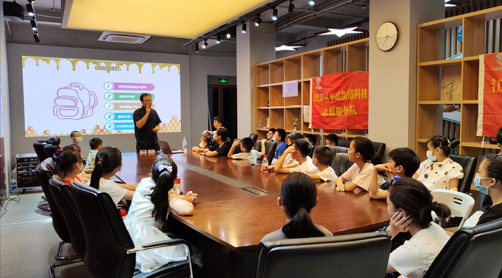 为丰富青少年暑期精神文化生活,让孩子们在欢乐中感受科学魅力,激发孩子们对科学的好奇心和探索热情,提升青少年科学素养。2022年8月25日下午,江岸区科协、车站街道办事处联合江岸区新时代文明实践志愿服务总队科学普及志愿服务队在车站街道大智无界·空中小镇党员驿站开展了一场“江岸科学探秘营——昆虫总动员·中华蜜蜂”活动,30余名企业职工子女、辖区小朋友组成的“小小科普团”在科技志愿者的带领下开启了一场科普探秘之旅。