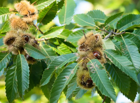 板栗有“干果之王”的美称,想象不到吧,它竟然包裹在一层刺里面,其实板栗在成长期整个就是一个小刺球,全部都是刺,圆圆的,看着很好玩,但是基本上碰不得,否则就会满手都是各种小刺。