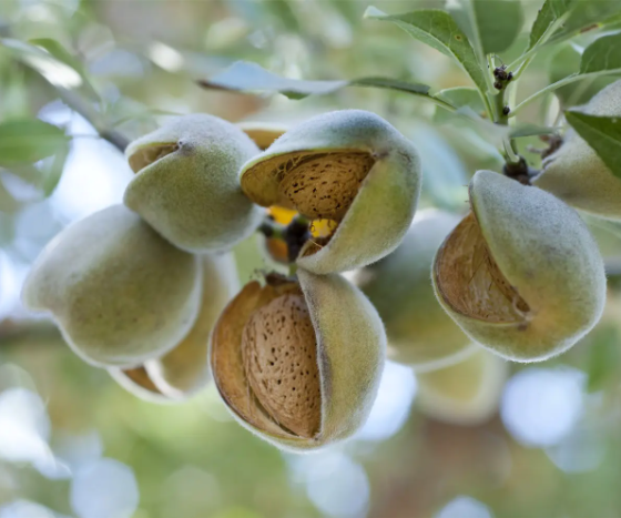 是的,你没有看错,巴旦木确实是长在树上的,它的外面有一层果肉包裹着,成熟之后果皮就会炸开,里面的果核就是干果巴旦木。