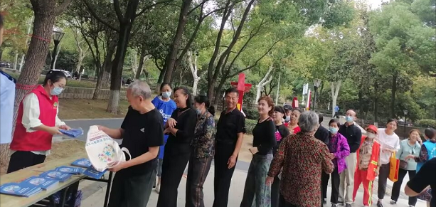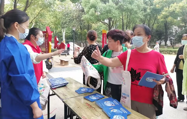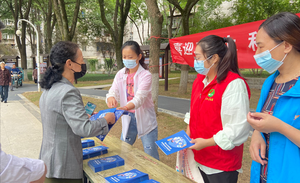 9月21日上午,望丰社区在红色文化广场开展“喜迎二十大,科普向未来”科普宣传进社区活动。科技志愿者通过发放科普宣传手册和印有科技志愿服务标识的手提袋、围裙以及悬挂科普日主题横幅等方式,向辖区居民宣传食品安全、疫情防控、防电信金融诈骗等相关科普知识。