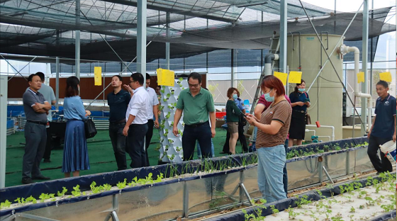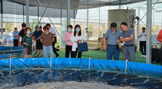 现场,一行人在园区工作人员的带领和讲解下实地参观了公司特色的鱼菜共生系统。