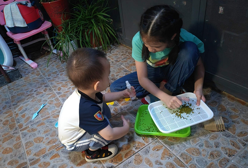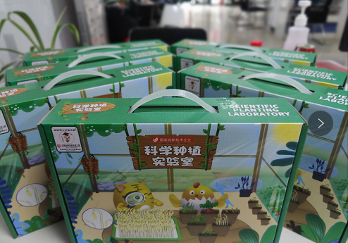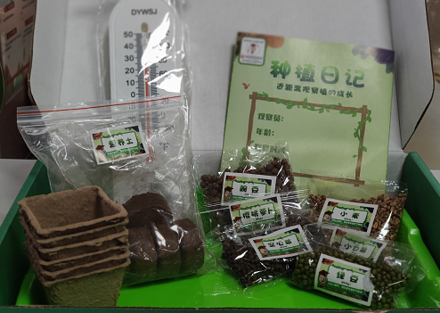 活动中,工作人员为每位小朋友准备了一套科学种植的实验套装,里面包含绿豆、小麦、萝卜、空心菜等各类种子,让小朋友们带回家和爸爸妈妈一起按照说明书来种植。