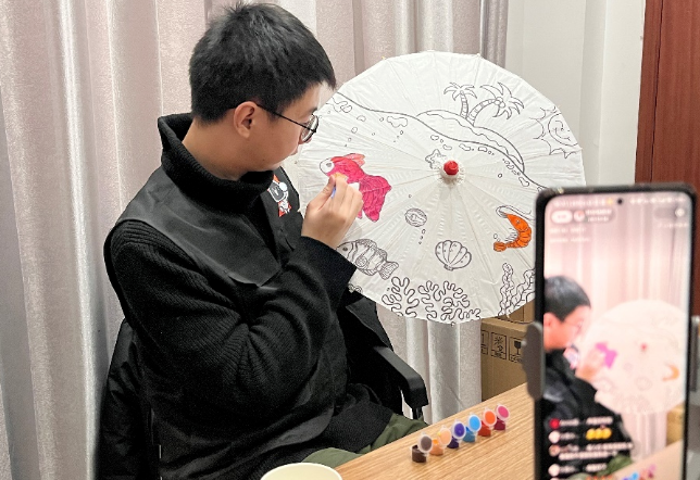 油纸伞是中国极具代表性的民间艺术瑰宝,已经被列入国家“非物质文化遗产”清单之中。通过咖啡老师的讲解,居民对油纸伞的文化传承产生了浓厚兴趣,迫不及待地想要绘画和制作油纸伞。