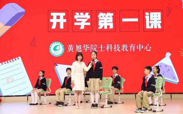 “第一课”上,中山路小学的少先队们自信展现社团成果:民乐社团演奏《楚韵》、驾驭未来“车模”社团、科创社团《智慧炫舞》,最后少先队员代表以诗朗诵《乘风破浪向未来》,向周巍老师这样的中国脊梁们致敬。