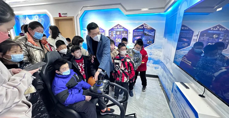 活动伊始,科普老师带领大家首先参观沉浸式科普体验空间,讲解探索飞行模拟驾驶、VR互动体验 “虚拟现实”、“航空航天”、“奇幻地理”、“全息互动”、“碳中和”、“基础科学”、“智慧生活”、“生命健康”、“网络安全”、“科普DIY” 等区域,小朋友们瞬间被科学的魅力深深吸引,争先恐后地体验互动展品,先是跟随老师感受听话的机械手,再亲自动手操作模拟驾驶开飞机,后体验VR世界的惊心动魄等等,“忙”得不亦乐乎,过足了“科学瘾”。在互动体验中孩子们学习了科学知识,感受到科技带来的乐趣。