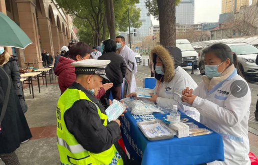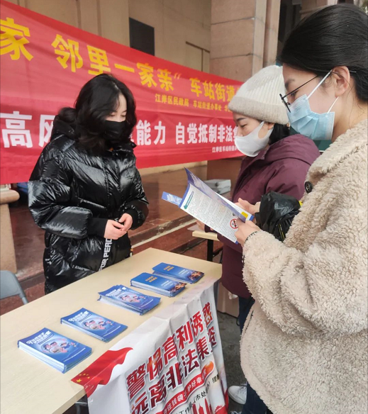 “阿姨您的血压保持的很好,平时注意清淡饮食,有空多出去走走晒晒太阳”,医护志愿者仔细叮嘱刚刚测量血压的居民。来自各专业领域的医护工作者们组成了联合义诊科普队,穿着红马甲的志愿者们向居民科普了常见病的预防与治疗,义诊项目包括口腔、内科、眼科、中医等等,满足了现场大多数居民的问诊需求;现场另一支队伍是由律师、民警以及防非宣传员等志愿者组成的反诈防非科普队,志愿者生动诙谐的比喻和引人入胜的故事吸引了不少居民,现场介绍了网络电信诈骗的作案手段和养老陷阱的常见形式,并发放防非处非宣传册,充分调动社区居民积极性,形成“不相信、不参与、敢揭发”共同防范风险的良好氛围,在场的老人们纷纷对五花八门的各种骗局表示“一不留神就要吃亏,遇事要多留个心眼”。