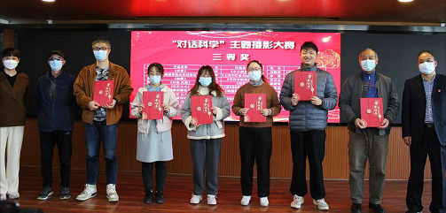 活动现场公布了评审结果,《科学密码》《科技之光》《科学与自然》等十件作品获得一等奖,《相看两不厌》《光影绚烂•梦想不断》《武汉科技馆水展厅》等20件作品获得二等奖,《光影》《眼睛里跑出来的彩虹》《触摸》等30件作品获得三等奖。参会领导为获奖者颁奖并合影。