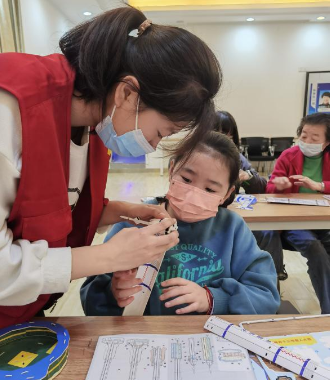体验结束后,谢老师发动孩子们成为江北社区小小科普志愿者,并邀请大家注册成为“科普中国”线上志愿者,在社区大家园中进行宣讲科普知识志愿活动,帮助更多青少年在社区科技馆中学习科普知识。