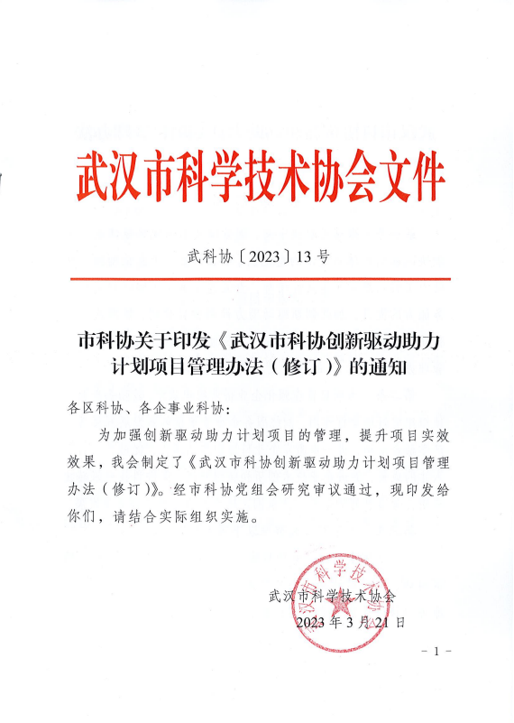市科协关于印发《创新驱动助力计划项目管理办法(修订)》的通知