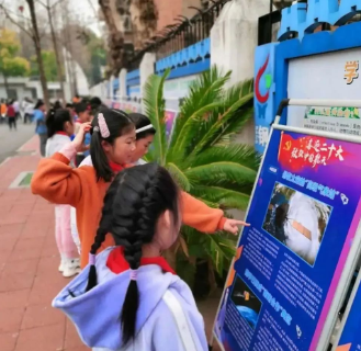精美的展板一进校园便引来了同学们兴奋地围观。仔细寻找着他们熟悉的天宫一号,从展板上再仔细看看“天宫课堂”。