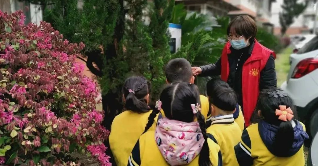 “老师,那一片红色的是什么花呀?”活动当天,社区工作人员带领小朋友们走到室外,一同观察社区里的绿植花卉。小朋友们围着工作人员,一路上叽叽喳喳问个不停,现场洋溢着浓厚的学习探索氛围。