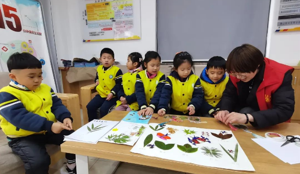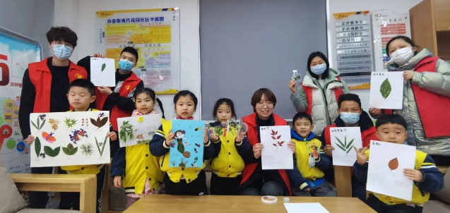 一场春雨过后,社区里散落了不少树叶和花瓣。在社区工作人员的带领下,小朋友们将掉落的树叶和花瓣统一收集起来,准备动手制作植物标本。